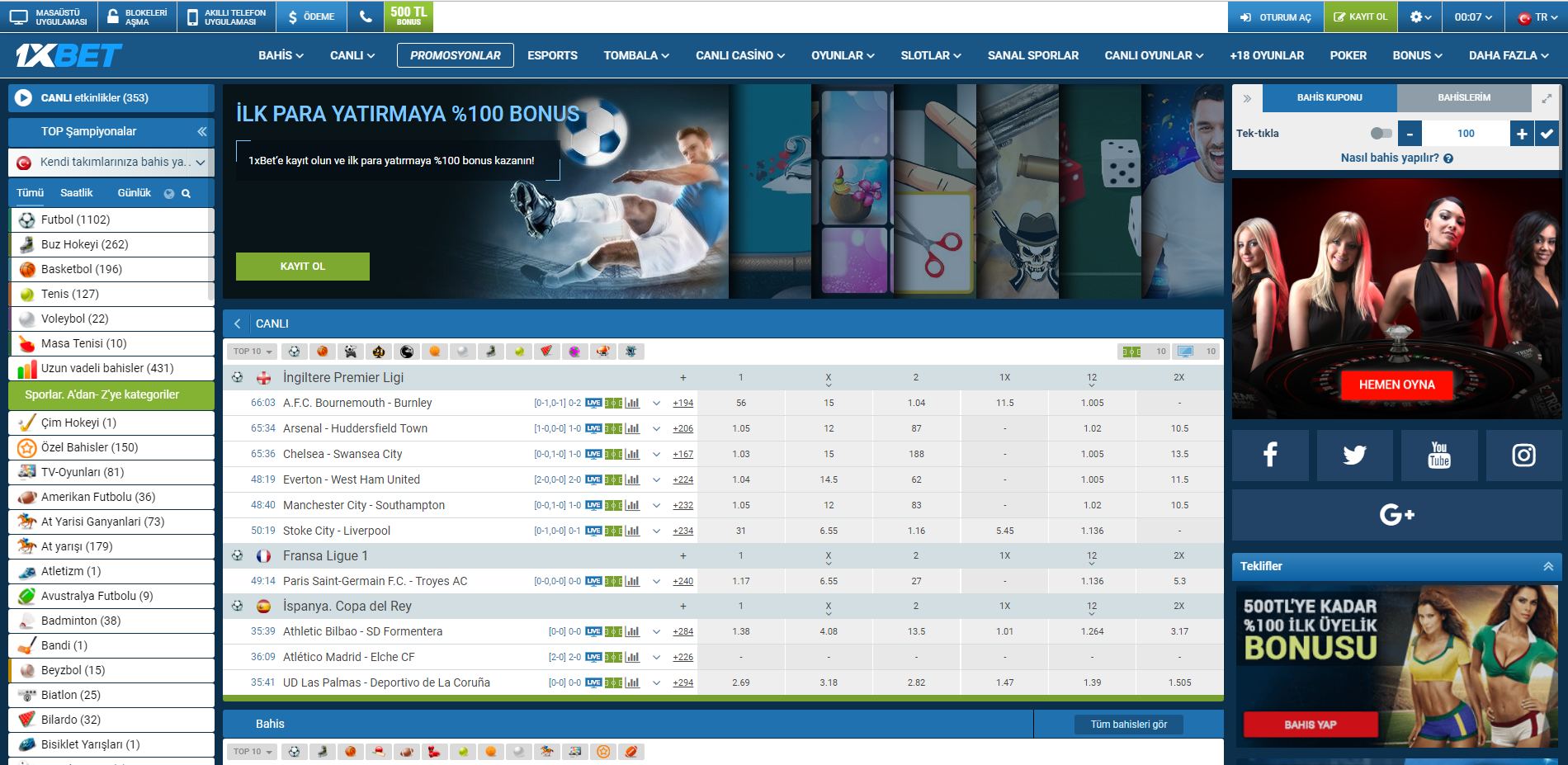 1xbet bahis sitesinde yer alan oyunlar arasında; canlı bahisler, spor bahisleri, casino oyunları gibi farklı oyun seçenekleri bulunaktadır. Bahis sitesi üyeleri istedikleri oyunu oynayabilmekte ve sitenin verdiği bonus olanaklarına bağlı olarak oyunlarını verimli hale getirebilmektedir.