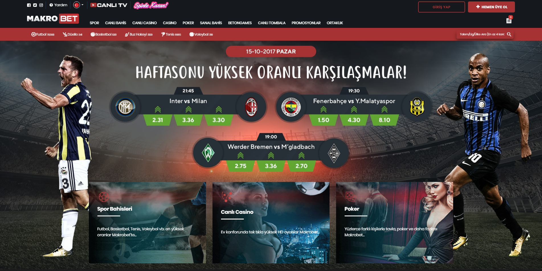 Makrobet bahis sitesi verdiği maçlar ve yüksek oranlar ile bahis oynayıcıları sevindirmiş ve bu alanda en iyi bahis sitesi kulvarlarına girmiş olan bir sitedir. Oyuncu bahisleri, korner bahisleri, kart bahisleri, gol bahisleri, dakika bahisleri gibi birçok seçenek sunan makrobet bahis sitesi kazancınızı katlamanız için tüm imkanları sunan bir sitedir.