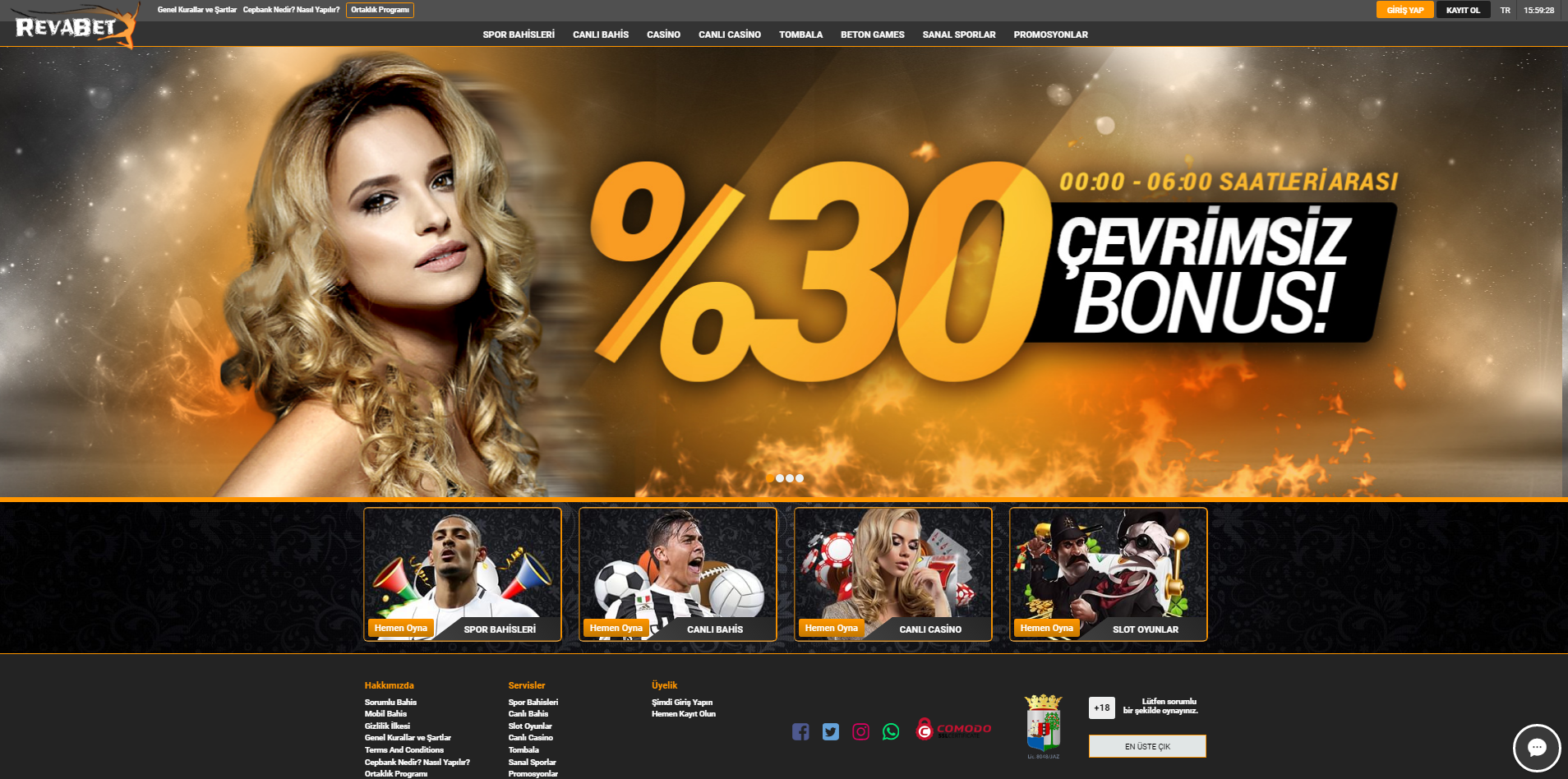 Revabet içerisinde ilgi çeken noktalar sadece bahis seçenekleri olmamakla beraber aynı zamanda da bonusları ile de ilgi çekecek türde de ön planda yer alacaktır. Revabet bonusları kapsamında yatırım ve çevirim şartları gündeme gelecek olup; aynı zamanda da bu şartlar sonrasında da Revabet canlı destek hattı da devreye girecek türde de bir promosyon olarak da ifade edilecektir. Revabet kapsamında söz konusu promosyonlar böylelikle spor bahis seçenekleri ile beraber aynı zamanda da casino uygulamaları dahilinde de kullanılabilecektir.
