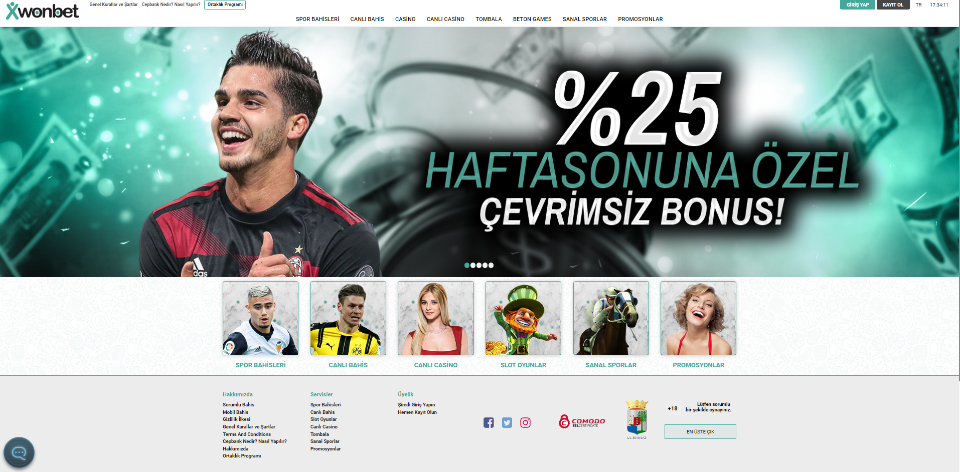 Türkiye içerisinde online olarak yayın yapan ve çeşitli bahis – şans oyunları içerikleri ile hizmetlerine devam eden Xwonbet bahis sitesi, piyasanın en kaliteli ve en güvenilir şirketlerinden biri olarak karşımıza çıkıyor. Curacao ülkesindeki bahis ve kumar düzenleme kurulu aracılığı ile almış olduğu lisansı doğrultusunda denetime tabi olarak yayın yapan site, bu yönü ile de öne çıkıyor. Spor bahisleri servisi, canlı Casino oyun bölümü, Casino slot servisi, tombala, poker, sanal bahis, canlı bahis ve diğer pek çok farklı bölüm, bu site içerisinde yer almaktadır.